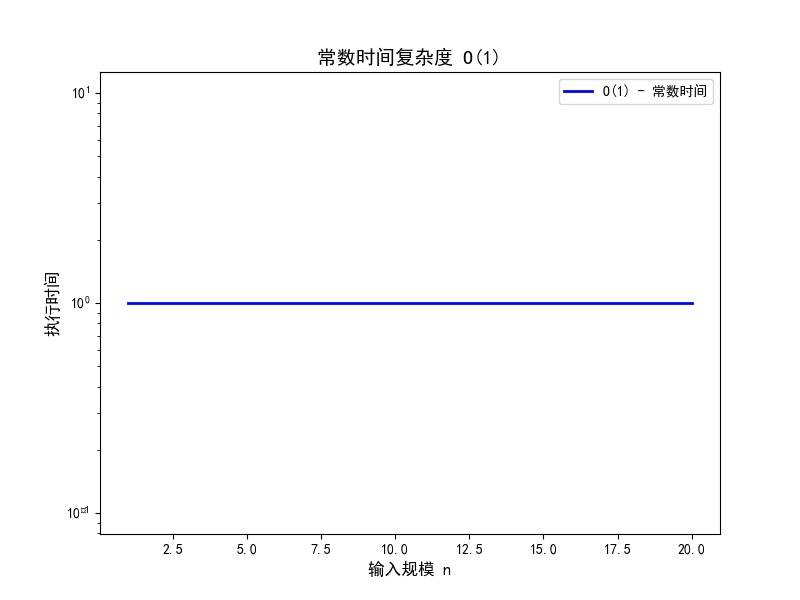 - **O(1)**:常数时间,无论输入规模如何,执行时间都相同。
