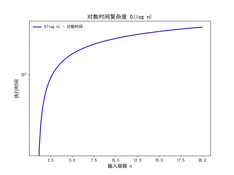 - **O(log n)**:对数时间,增长较慢,常见于二分查找等算法。