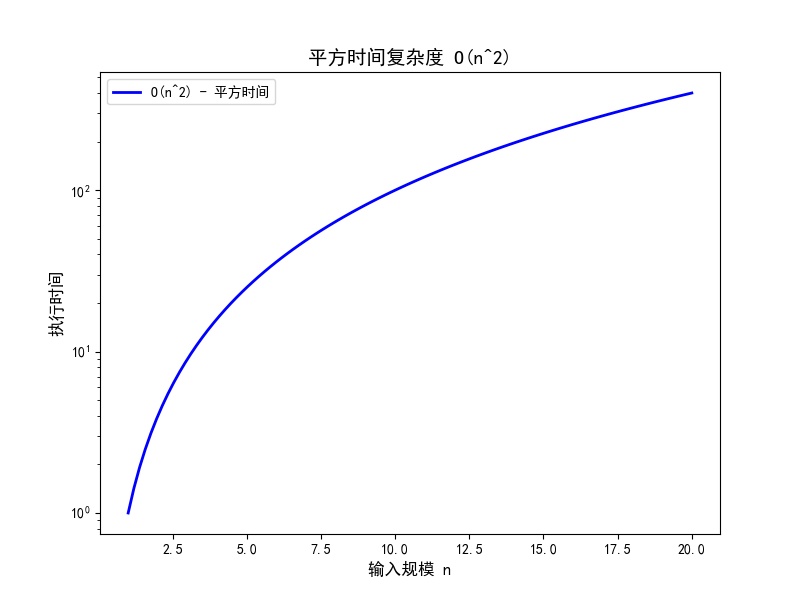 - **O(n^2)**:平方时间,常见于简单的排序算法,如插入排序、冒泡排序等。